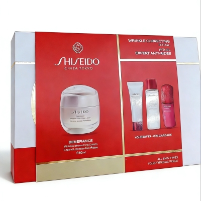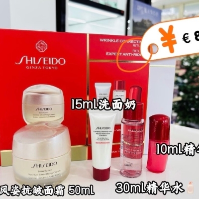 这个套盒是资生堂盼丽风姿抗皱修护礼盒(WRINKLE CORRECTING RITUAL)资生堂盼丽风姿系列的抗老礼盒,适配所有肤质。